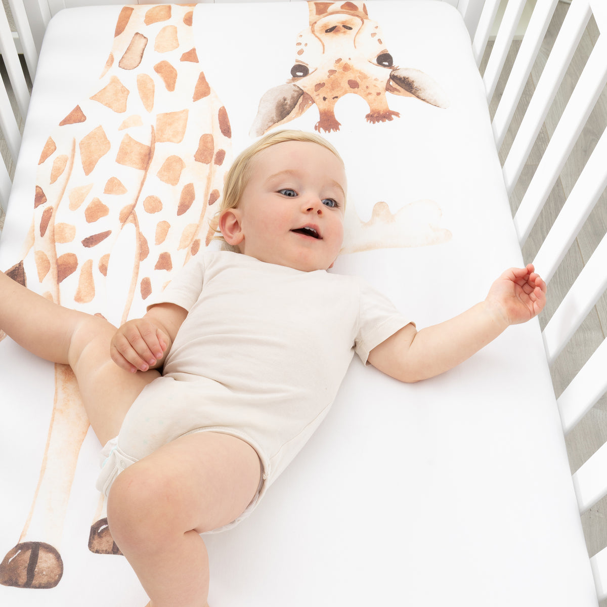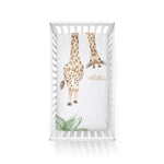 Each piece in our collection is designed to inspire curiosity and creativity, featuring a giraffe character surrounded by lush greens to promote a soothing atmosphere. These gorgeous fitted sheets designed by Bubba Blue are made from soft jersey for comfort and feature elasticized edges for a snug fit.