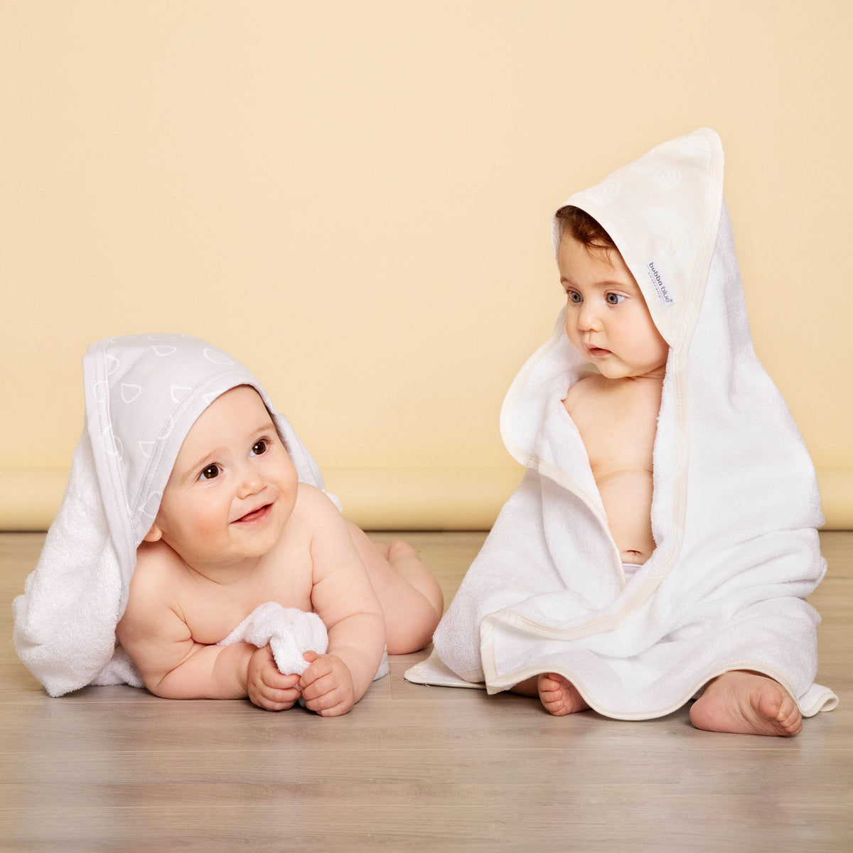This gorgeous two pack of hooded towels from the Bubba Blue Nordic Collection are the perfect first hooded towel for baby. Soft & gentle against delicate skin, our hooded towels are the perfect size to use from birth upwards.