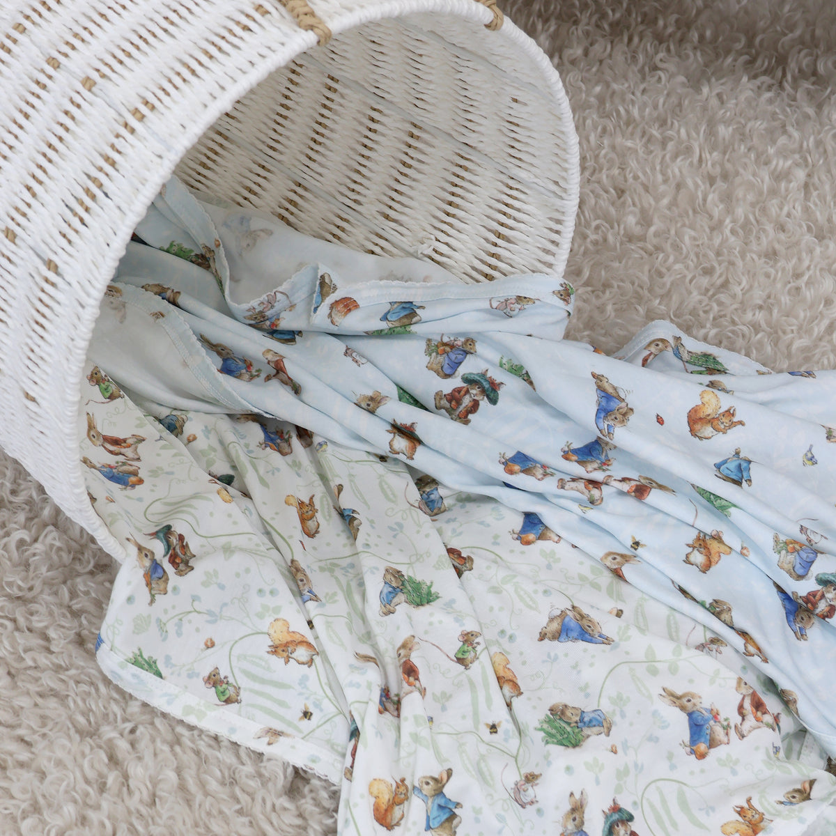 There, with the gentle rustle of leaves whispering lullabies, Flopsy and her sisters drifted into dreams filled with the magic of tomorrow. These gorgeous printed wraps are made from soft jersey for comfort and have just the right amount of stretch to keep your little one cosy and well wrapped.