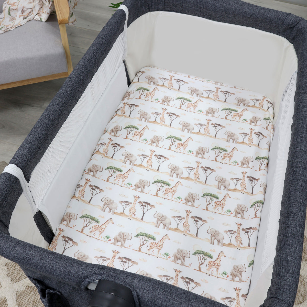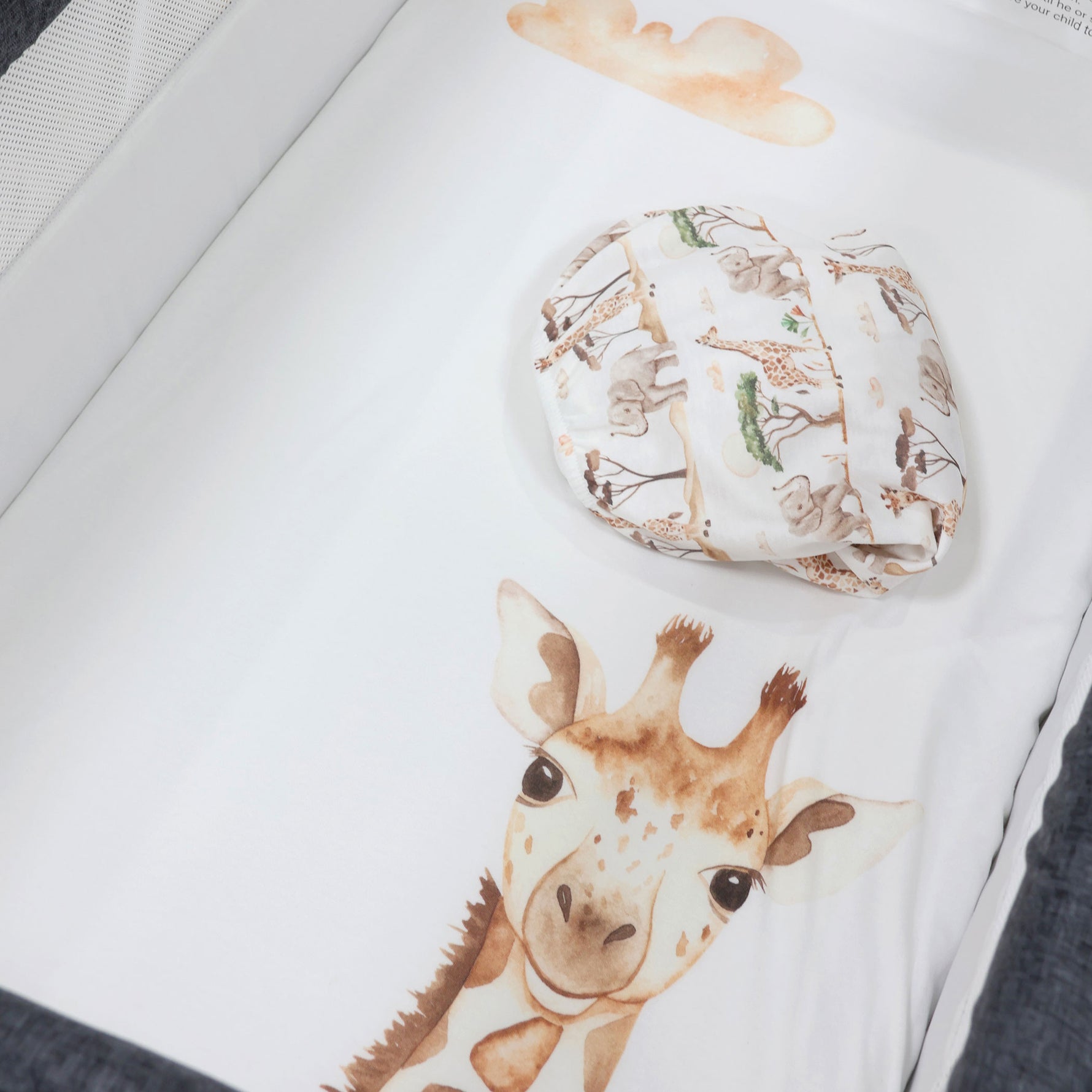 Welcome to a world of wonder with our Adventure Bamboo Baby Nursery Collection! Transform your little one's space into a vibrant tropical jungle filled with the enchanting spirit of watercolour-illustrated giraffes and elephants.