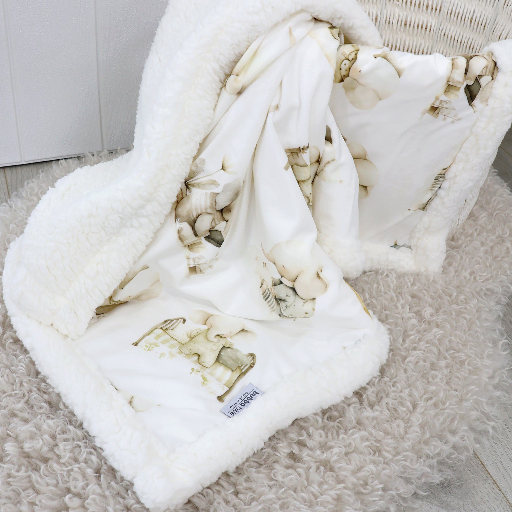 This gorgeous blanket designed by Bubba Blue features a plush velour front and cosy fleece lining.