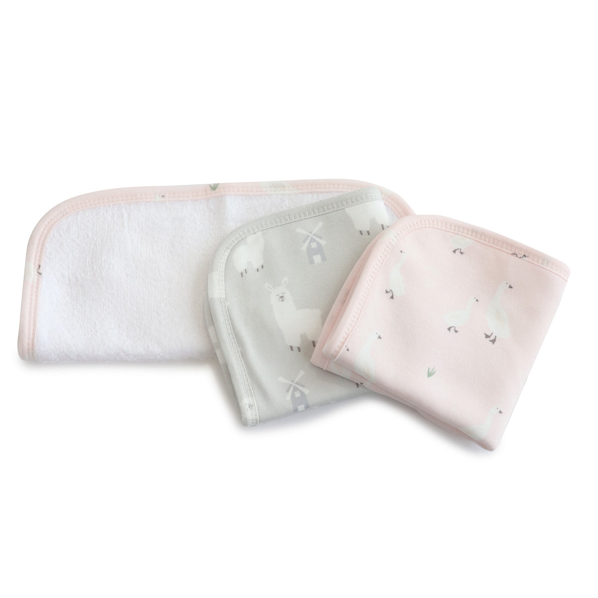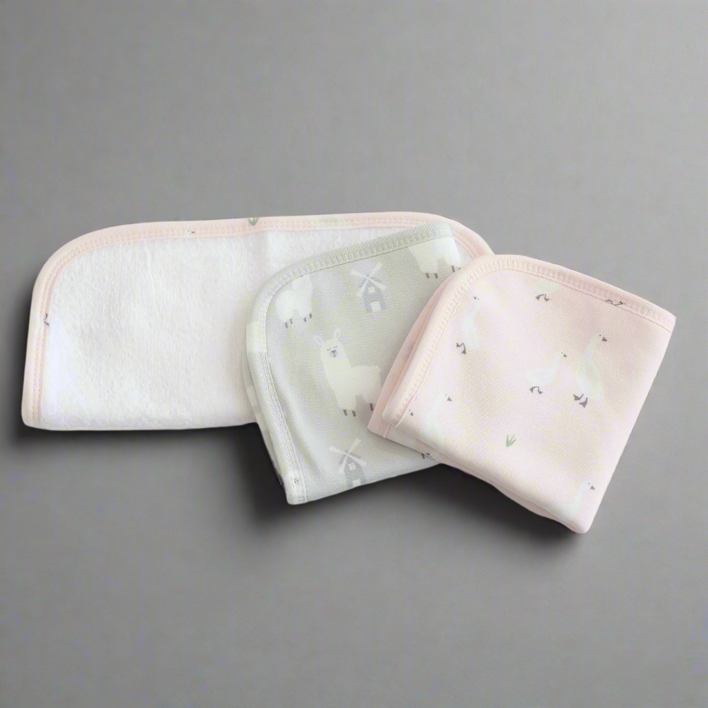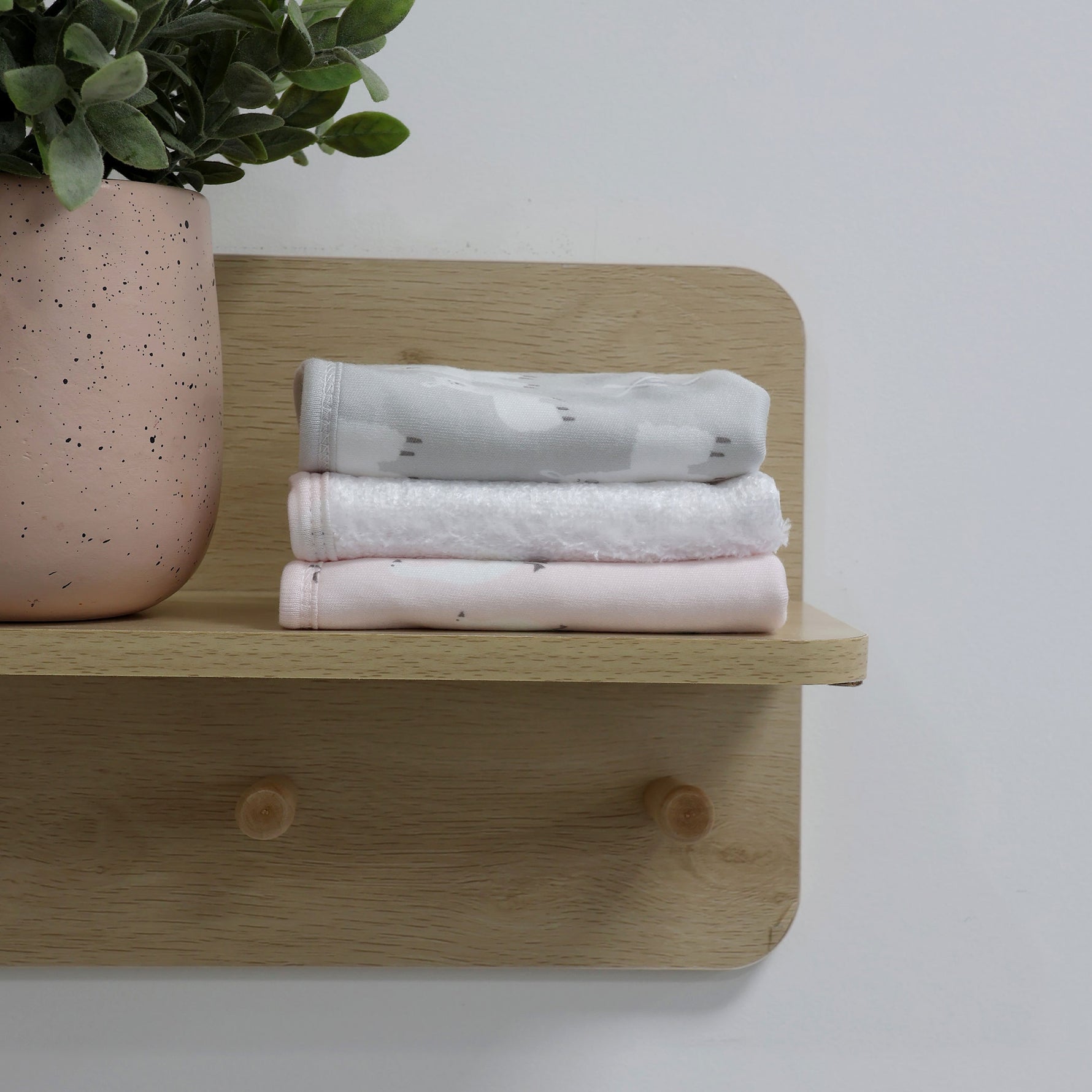 Crafted from soft and absorbent towelling in a range of pastel colours, this set of three baby wash cloths is the ideal bath time accessory. Perfect for use on baby’s delicate skin.
