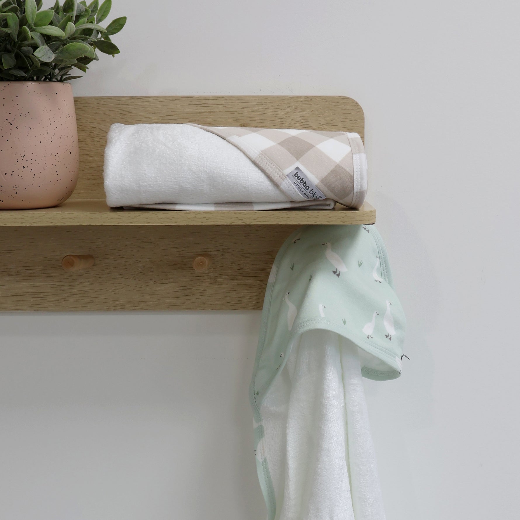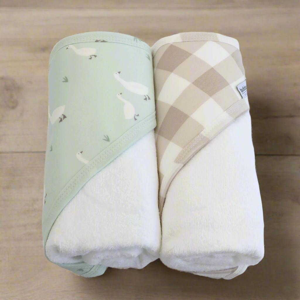 This gorgeous two pack of hooded towels from the Bubba Blue Provincial Collection are the perfect first hooded towel for baby. Soft & gentle against delicate skin, our hooded towels are the perfect size to use from birth upwards.
