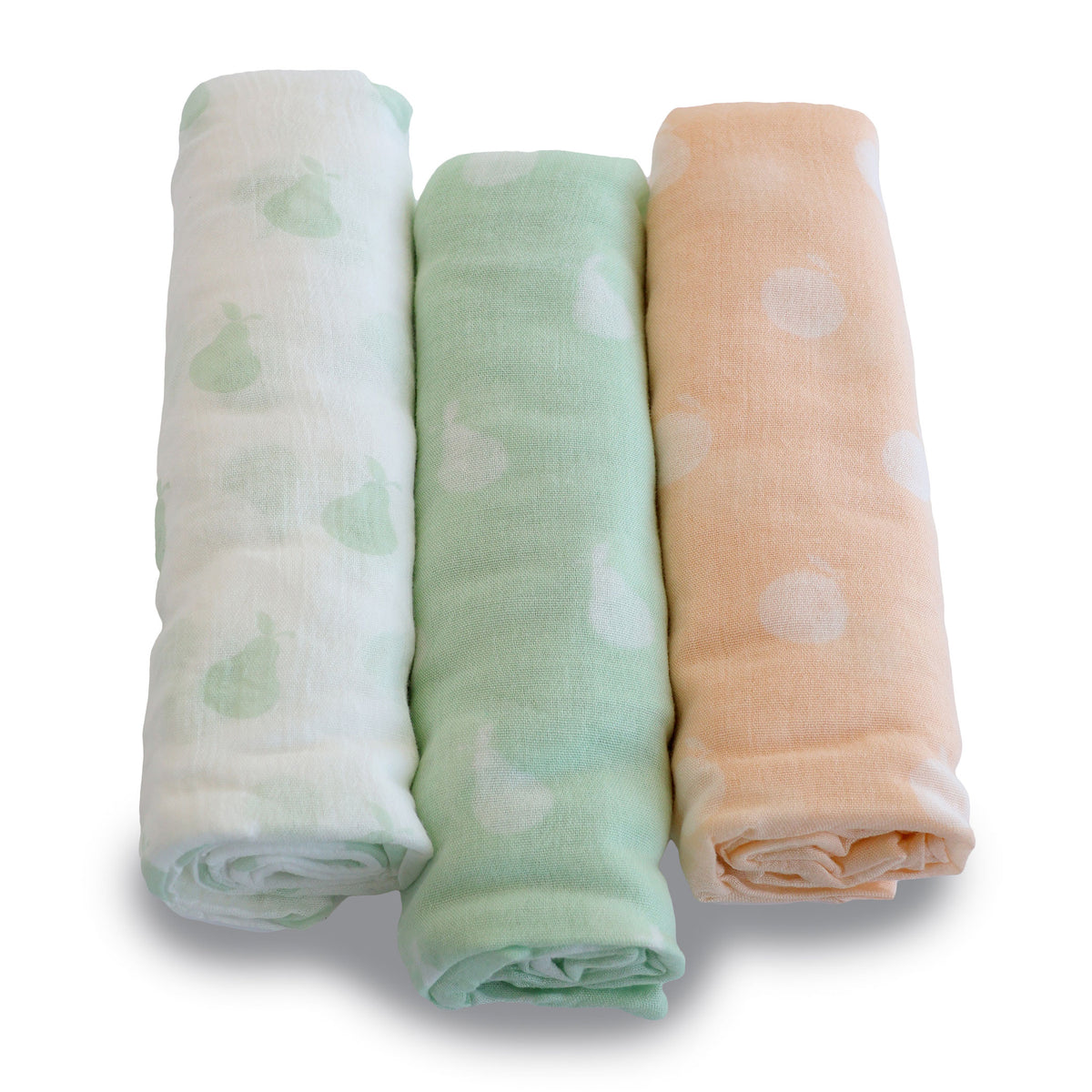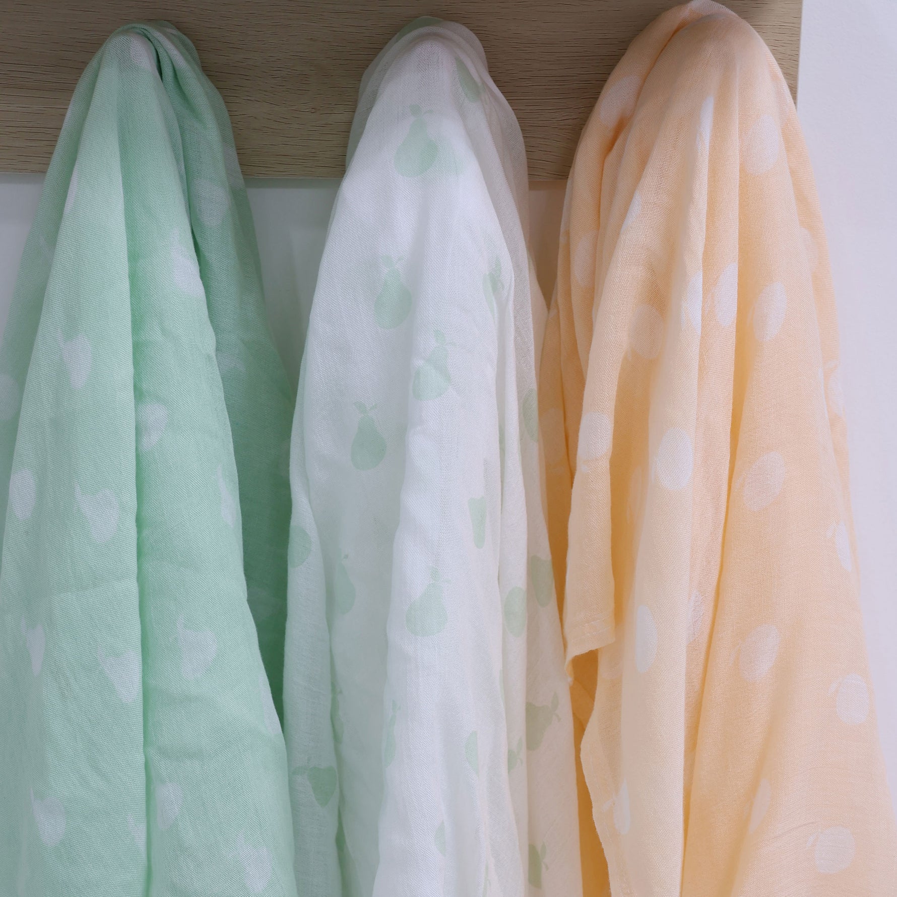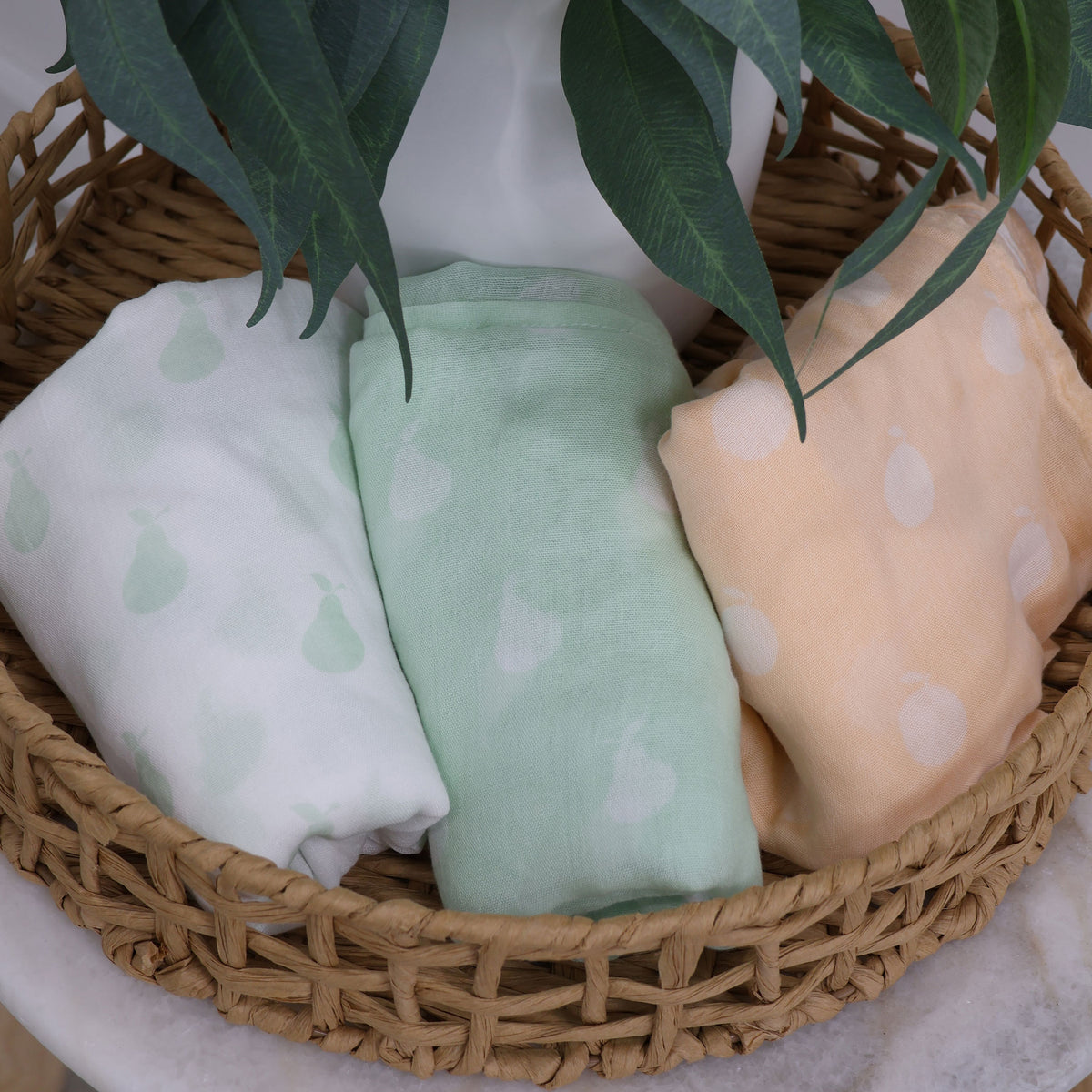Nordic Sorbet 3pk Muslin Wraps Orange/Pear