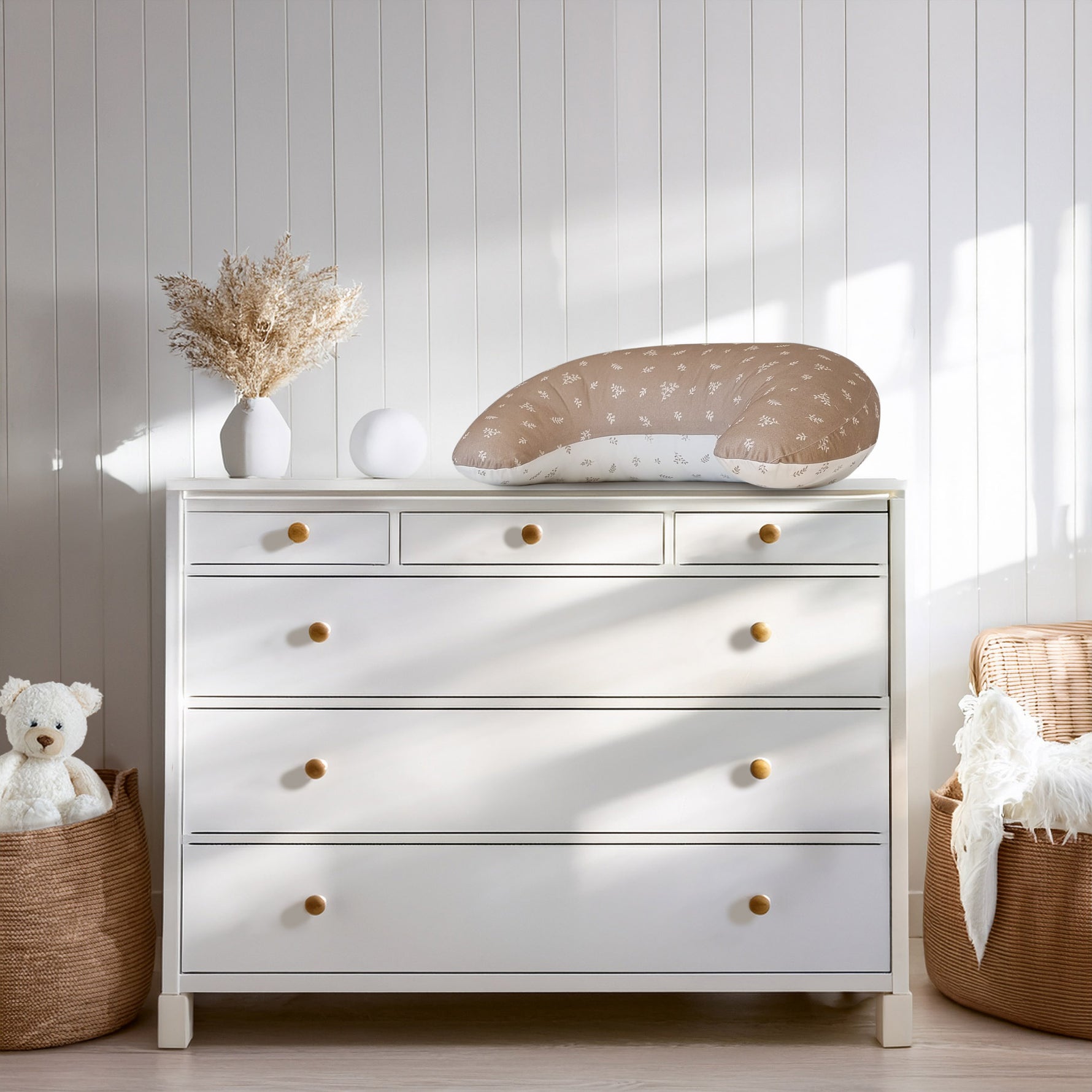 Our supportive U-shaped nursing pillow will help you and your baby maintain a comfortable position for breastfeeding & bottle feeding. Its versatile design with its firm yet cushioned structure and higher loft, will help support your ideal feeding position.