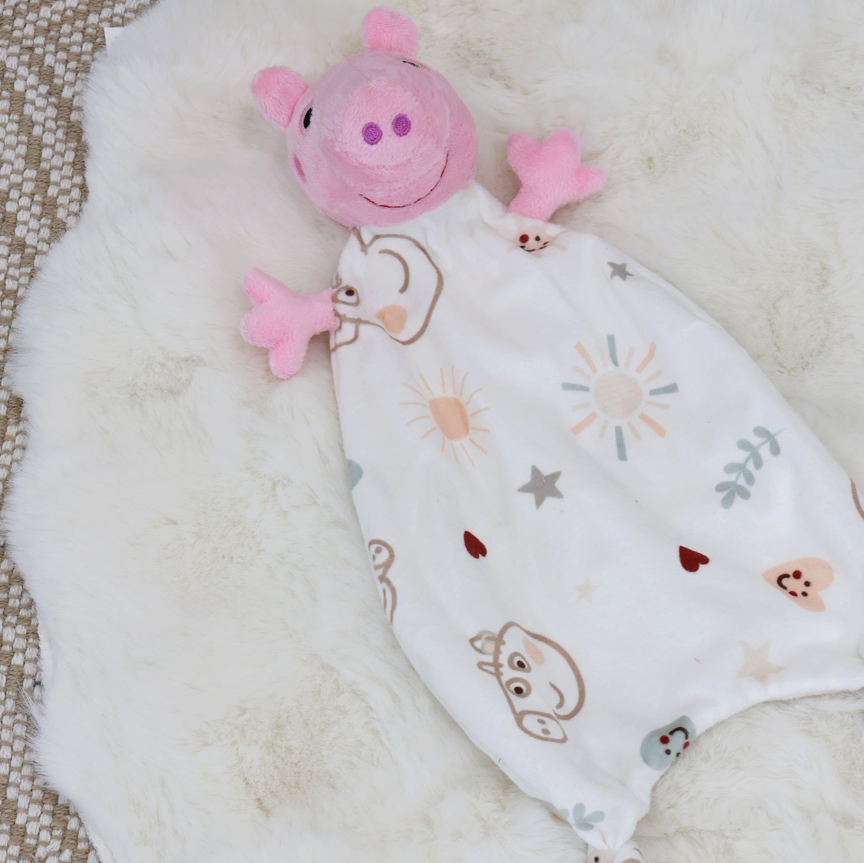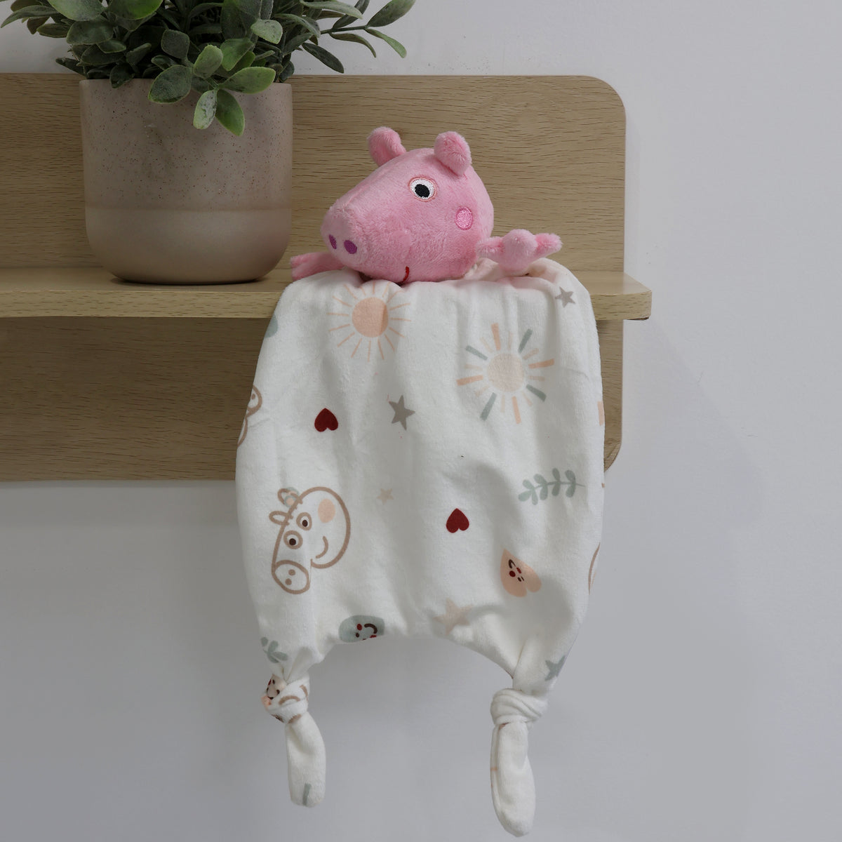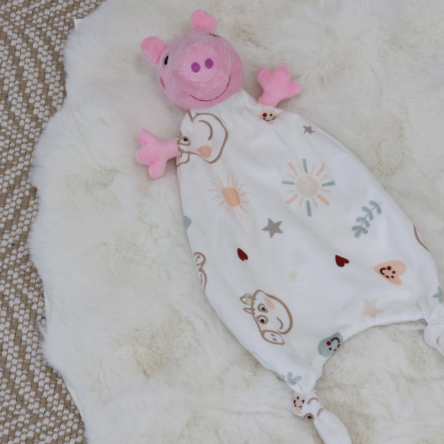 The Peppa Pig comforter toy is perfect for little hands to grip, cuddle, and play with. Featuring a super soft texture and knotted corners for easy holding, this sweet companion provides ultimate soothing comfort for your little one.