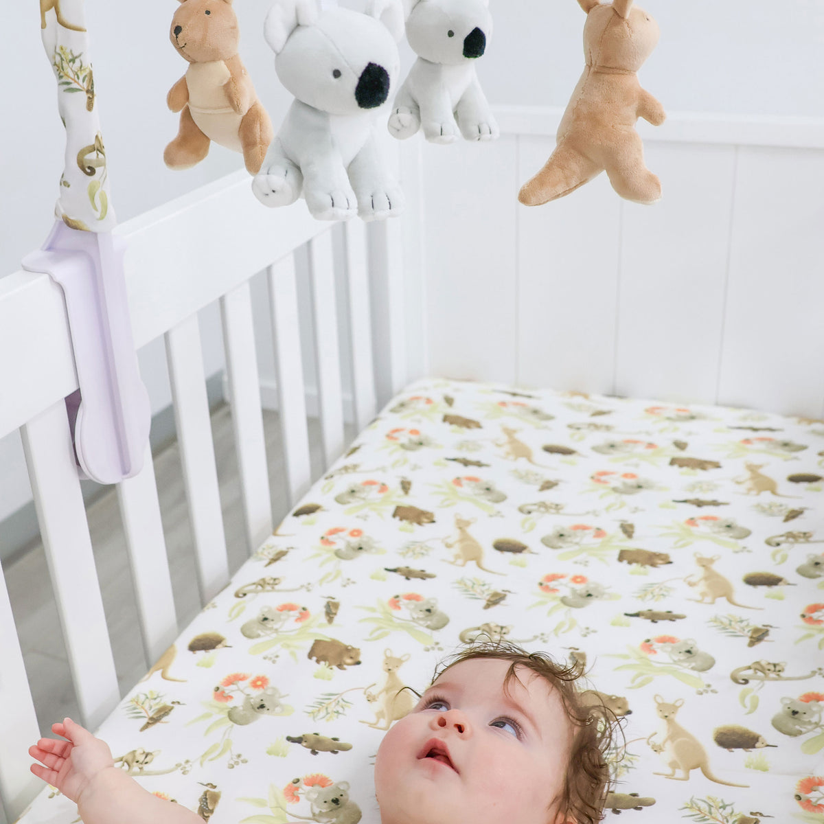 Gorgeous musical mobile featuring your favourite Aussie Animals is sure to delight little ones.