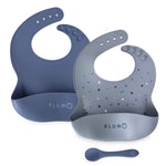 PLUM 3 Piece Silicone Bib and Spoon Set - Steel Blue/Denim