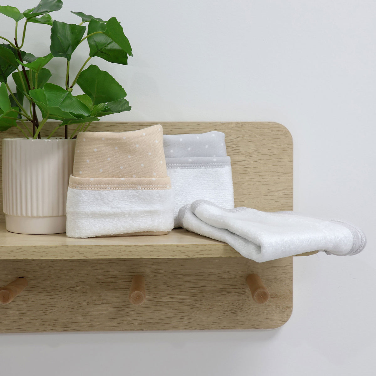 These gorgeous wash cloths from the Bubba Blue Confetti Collection make a cute and practical essential at bath time. Crafted from soft and absorbent towelling and finished with a jersey trim, this set of three baby wash cloths is the ideal bath time accessory. Perfect for use on baby’s delicate skin.