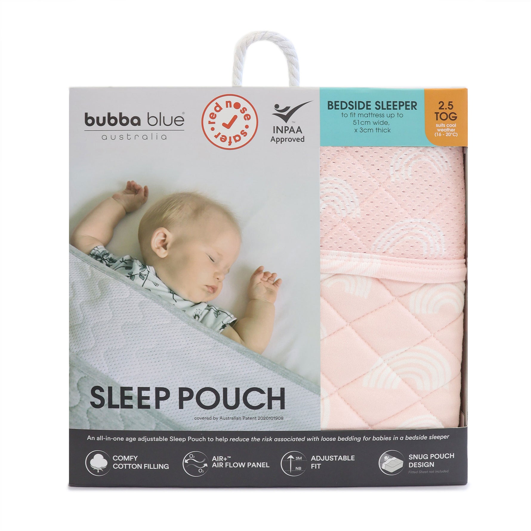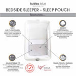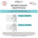 Sleep baby safely with the patented Bubba Blue® Sleep Pouch. An all-in-one sleep pouch design to help reduce the risk associated with loose bedding for babies in a bedside sleeper.