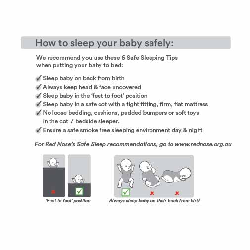 • This product has been reviewed by RED NOSE AUSTRALIA and meets the RED NOSE AUSTRALIA Safe Sleeping Criteria